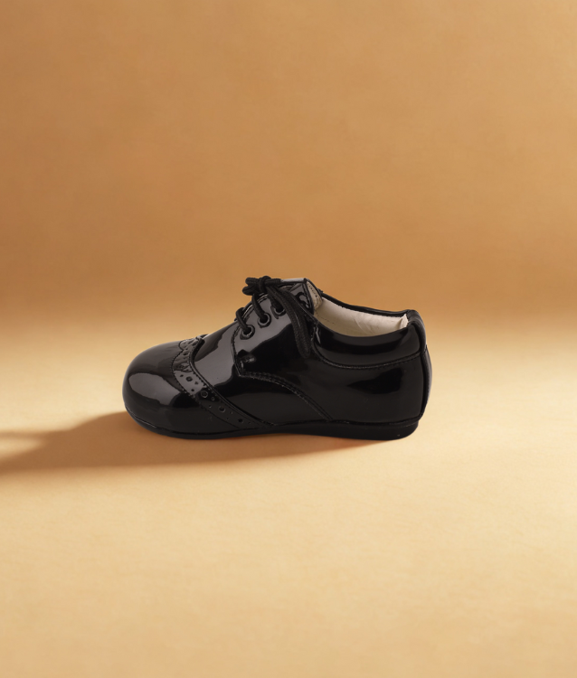 Step up your baby boy’s style with the Brogue Black Shoes for Babies in Napa Early Step by Harpers Footwear. These premium black shoes for babies combine timeless brogue detailing with a soft Napa finish, making them perfect for those precious early steps.